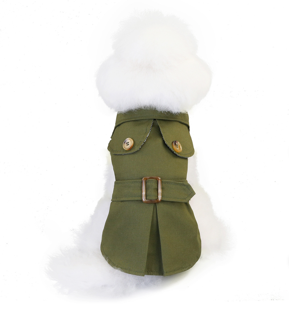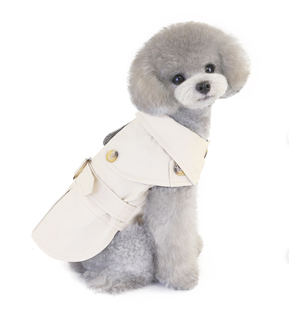 Keep your pup looking chic and comfortable with our classic dog trench coat. Designed with an adjustable belt for a stylish, tailored fit, this coat combines timeless fashion with everyday practicality. Made from lightweight, breathable fabric, it allows easy movement and all-day comfort. The quick-wear design ensures stress-free dressing for your furry friend. Perfect for spring and autumn walks, travel, or daily outings, this stylish dog jacket is a must-have for every fashionable pet.