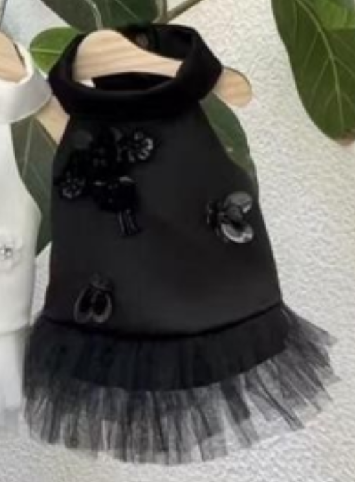 Beautiful dog wedding dress with a classic silhouette, available in both timeless white and sophisticated black.