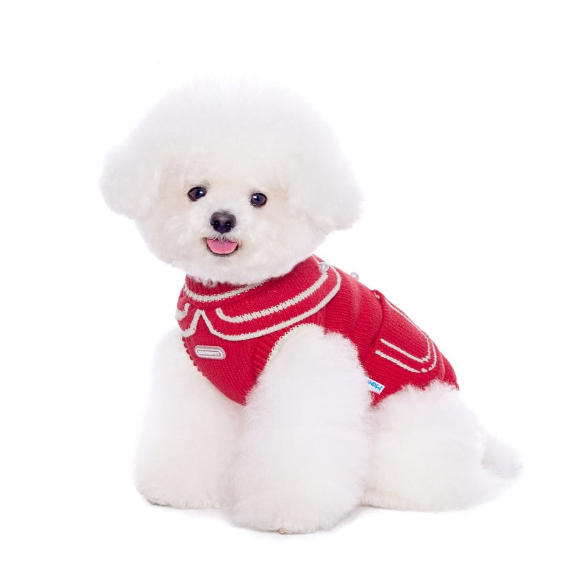Elevate your small to medium dog's winter wardrobe with this festive Christmas sweater vest. Crafted from soft, insulating materials, this red garment provides essential warmth during cold months while adding seasonal charm to your pet's appearance. The thoughtfully designed fit accommodates active dogs comfortably, allowing full range of motion for play and walks. Perfect for holiday photos, gatherings, or everyday winter outings, this vest combines practical temperature regulation with festive style. Easy to put on and remove, it's an ideal choice for pet owners seeking both functionality and aesthetic appeal during the colder season.