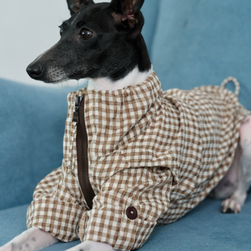 Designed specifically for Whippets and Italian Greyhounds, this Detachable Sleeve Bubble Cotton Shirts offers tailored warmth and comfort. Its bubble cotton construction provides insulation without bulk, while the detachable sleeves allow for versatile wear in varying weather. The shirts ’s thoughtful design ensures a snug fit that accommodates the unique slender build of these breeds, making it ideal for protecting your pet during colder months with expert attention to both function and style.