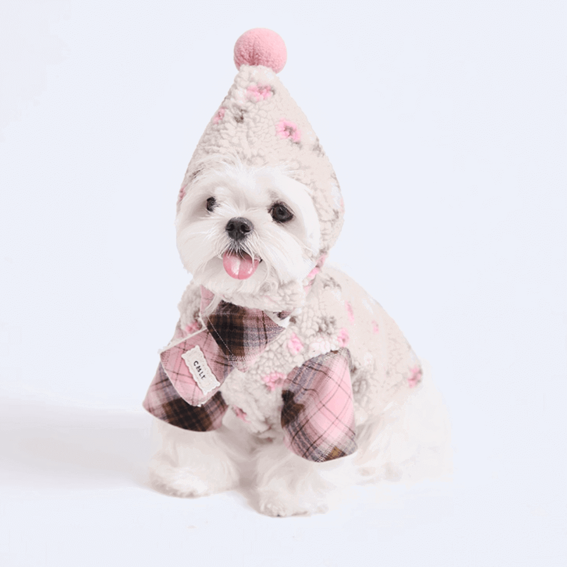 Dog Coat Sherpa Fleece Christmas Set with Scarf Hat Red Size XS-L