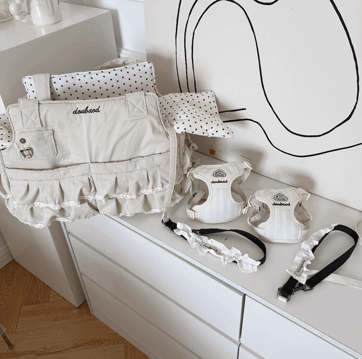 French Polka Dot Pet Tote Bag - Elegant Dog Carrier