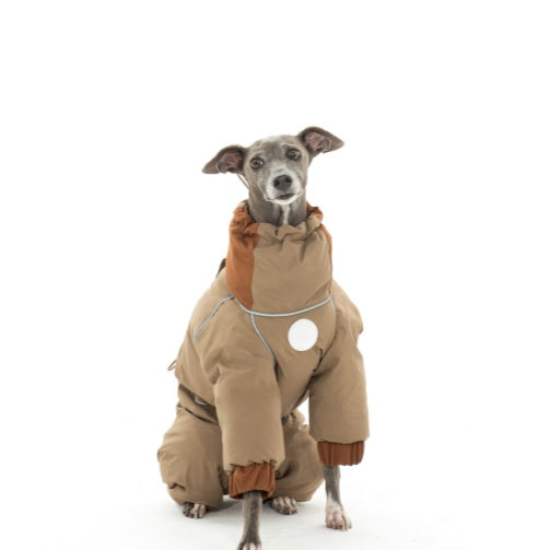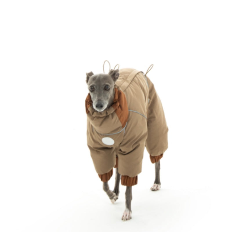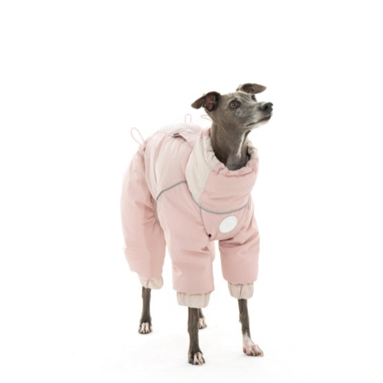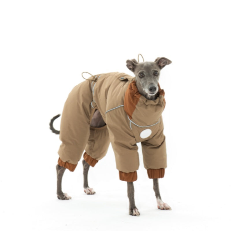 This handmade snowsuit features premium duck down insulation for exceptional warmth, specially designed to fit the unique body shapes of Bedlington, Italian Greyhound, and Whippet breeds. Its four-leg design ensures full coverage and mobility, keeping your dog comfortably protected in cold weather. Crafted with lightweight, fluffy materials, this snowsuit combines expert tailoring and superior insulation for both warmth and style during outdoor activities. Ideal for maintaining your petβs comfort in winter without compromising their natural movement.