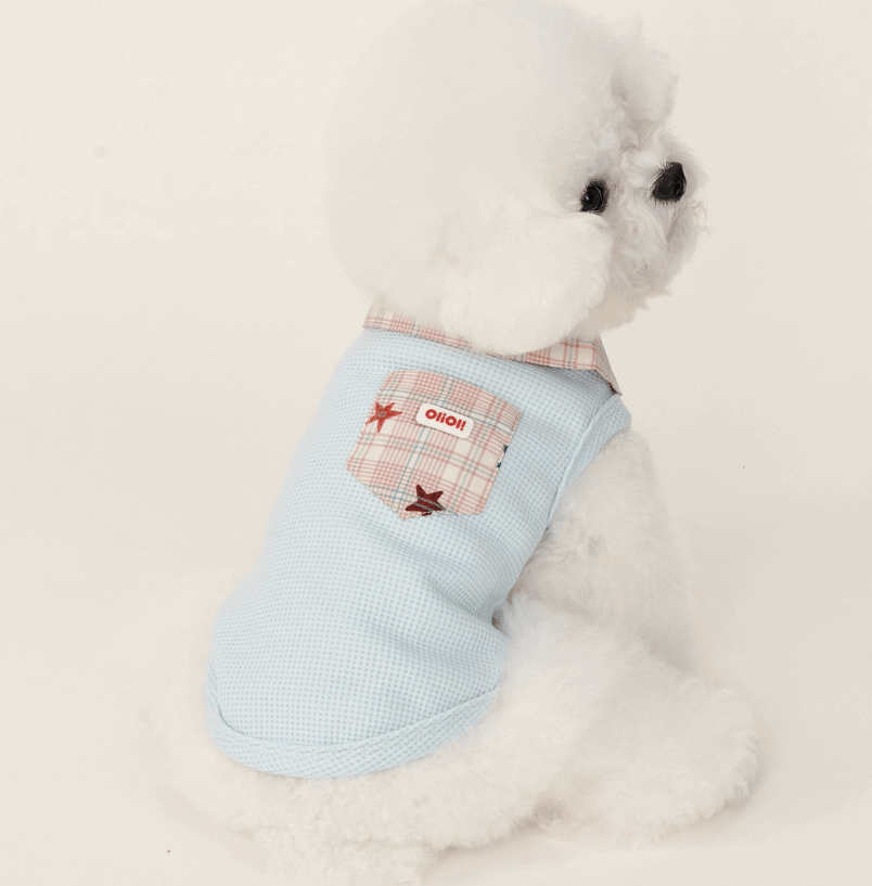Pet sweatshirt Collared Vest Knit Cotton Blue Size XXS-XL
