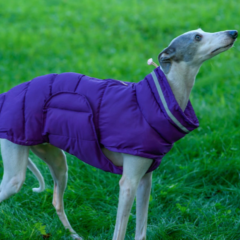 This thick padded high-neck dog jacket offers exceptional warmth and windproof protection, ideal for keeping your Italian Greyhound or Whippet comfortable during winter. Designed with a snug high neck and durable insulation, it shields your pet from harsh cold and gusts while allowing ease of movement. Its tailored fit ensures a secure and cozy wear, making it a practical choice to maintain your dog's well-being in chilly weather.