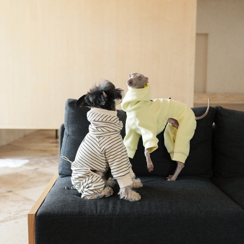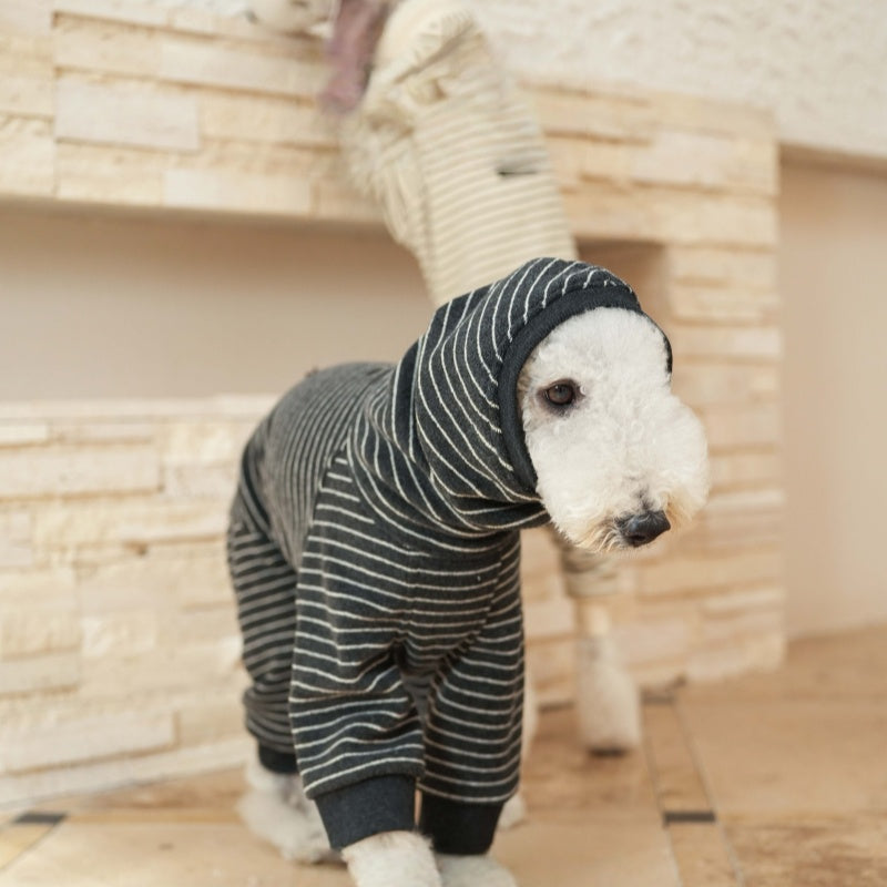 Designed specifically for slender breeds like Greyhounds, Whippets, and Bedlington Terriers, this Warm Terry Knit Hoodie Four-Leg Dog Onesie offers comprehensive warmth and protection. Crafted from soft terry knit fabric, it provides excellent insulation without sacrificing flexibility. The full four-leg coverage ensures your dog stays cozy during colder seasons while maintaining ease of movement. Perfect for dogs with fine coats, this onesie balances comfort and functionality, helping to keep your pet warm and comfortable outdoors or indoors.