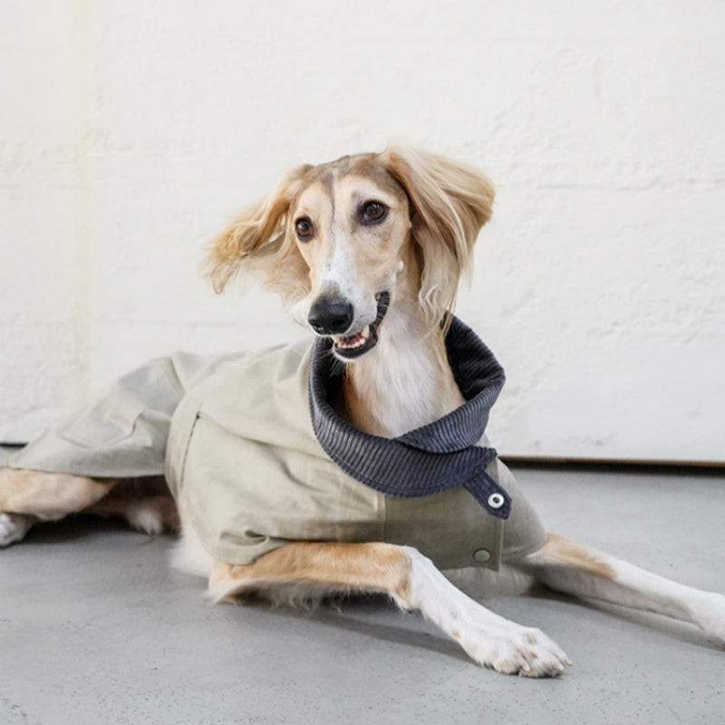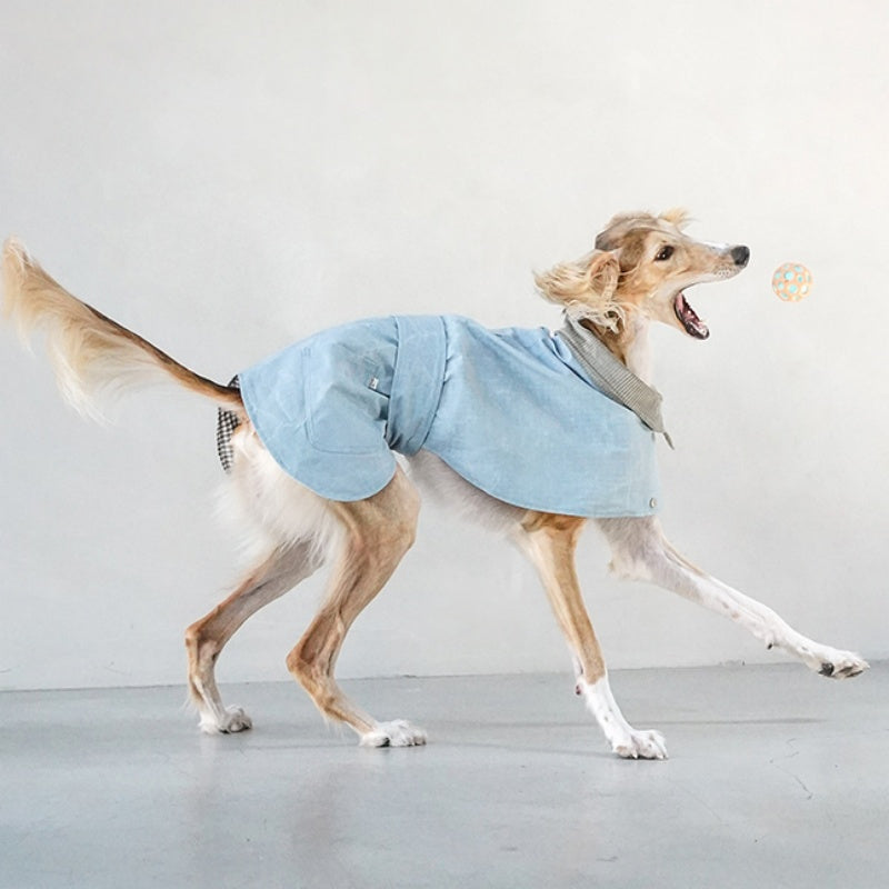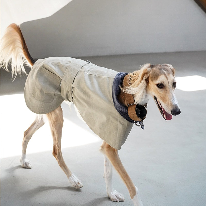 This waxed trench coat jacket cape is expertly designed for Italian Greyhounds and Whippets, offering a perfect blend of style and functionality. Crafted with durable, water-resistant waxed fabric, it protects your slender dog from wind and rain while maintaining a sleek, comfortable fit. The cape design allows easy movement, ensuring your pet stays warm and dry without restriction during outdoor walks. Ideal for both everyday use and special outings, this coat enhances your dog's comfort and appearance in any weather.