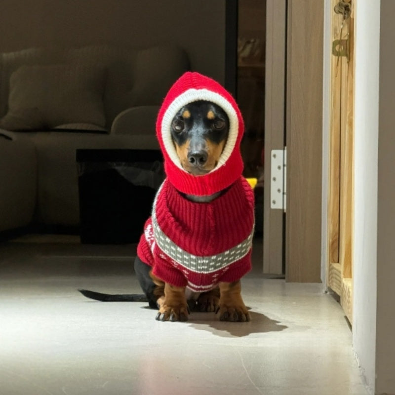 Designed specifically for dachshunds and small breeds, this Christmas red sweater combines festive style with practical warmth. The tailored fit accommodates the elongated body shape of weenie dogs, ensuring comfortable movement and proper coverage. Crafted from soft, insulating material, it provides essential protection during cold winter months while the vibrant red hue makes your pet stand out. Perfect for holiday celebrations, photo sessions, or everyday winter wear, this sweater keeps your dog cozy without restricting mobility.