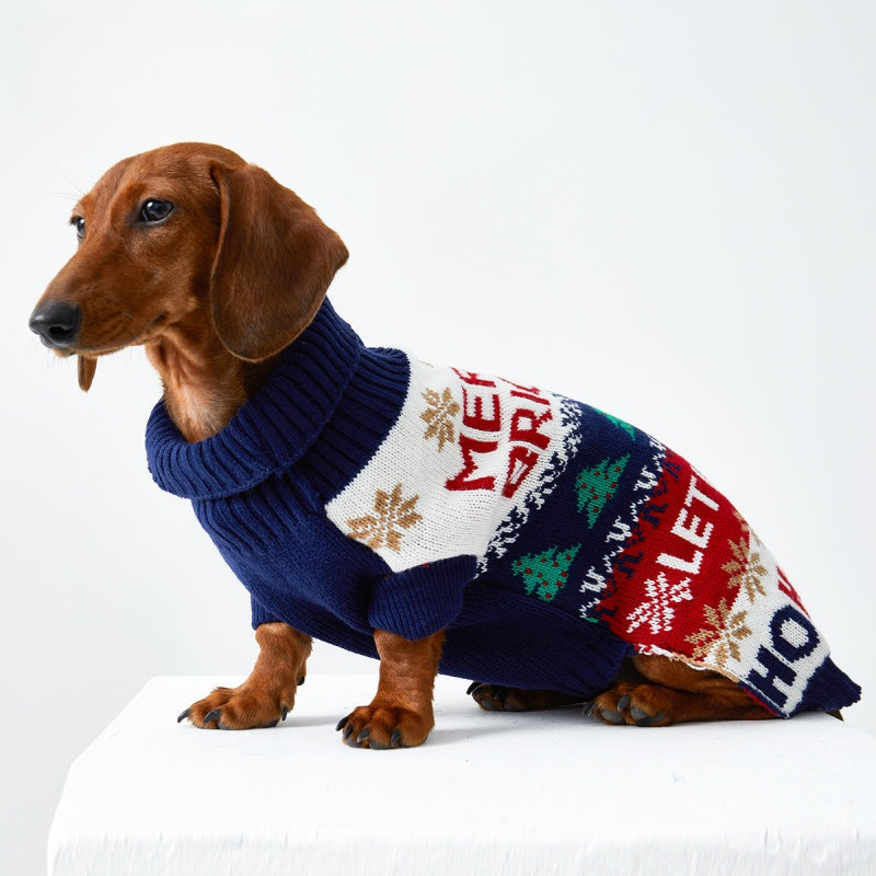 Dress your dachshund in festive style with this specialized Christmas sweater designed specifically for weenie dogs. Crafted to accommodate the unique elongated body shape of dachshunds, this outfit provides a comfortable, snug fit that won't restrict movement. The holiday-themed design adds charm to your pet's wardrobe while the quality construction ensures durability through multiple seasons. Perfect for holiday photos, gatherings, or everyday winter warmth, this sweater combines practical functionality with seasonal appeal for your beloved companion.