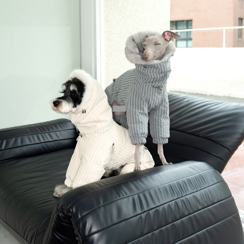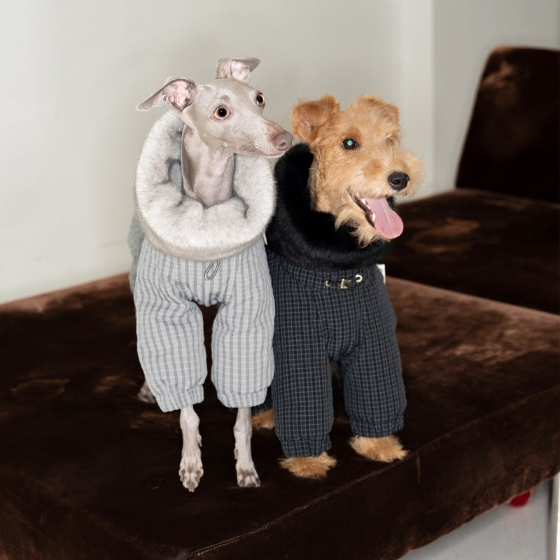 This premium winter puffer jacket features thick white duck down insulation for superior warmth during cold weather. Designed specifically for Bedlington Greyhounds and Whippets, its tailored fit ensures comfort and freedom of movement. The luxurious mink fur collar not only adds elegance but also provides additional protection against harsh winds. Durable and lightweight, this jacket combines functionality with style, making it an expert choice for keeping your lean-coated dog cozy and well-protected throughout winter.