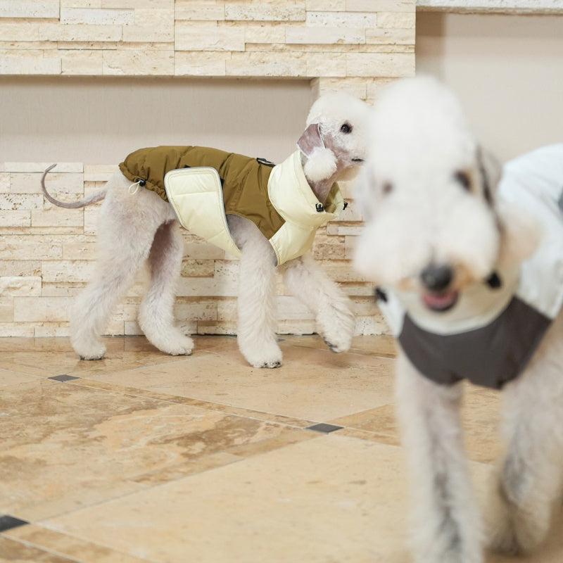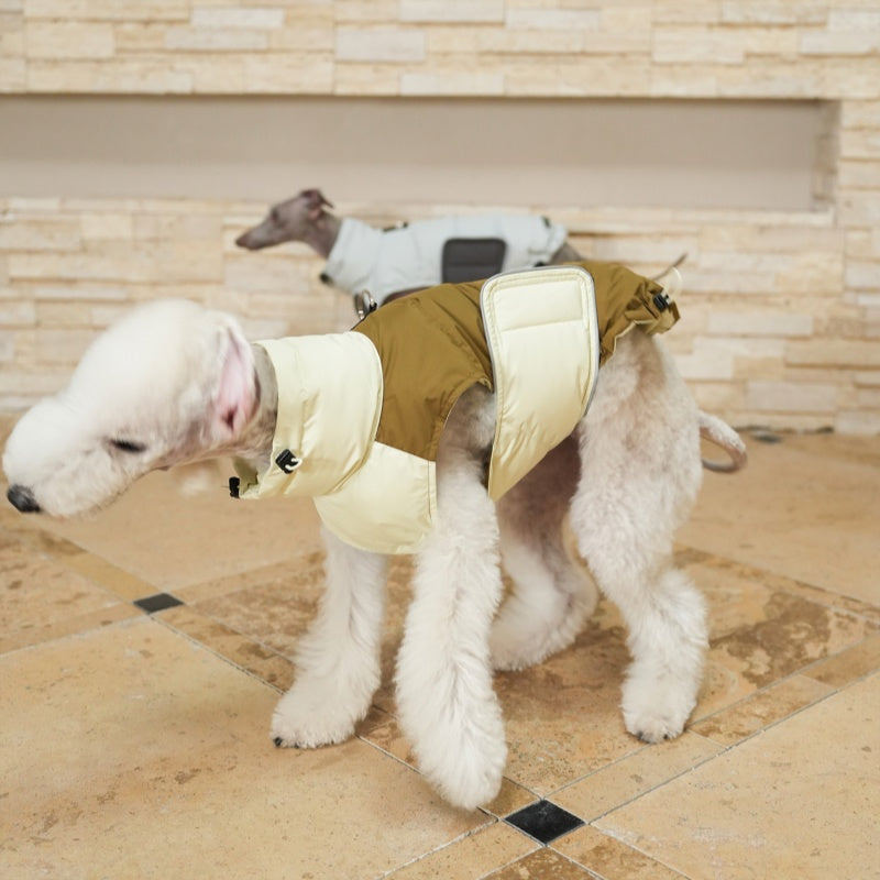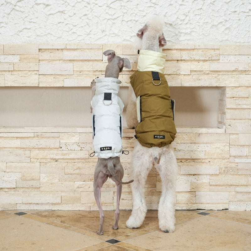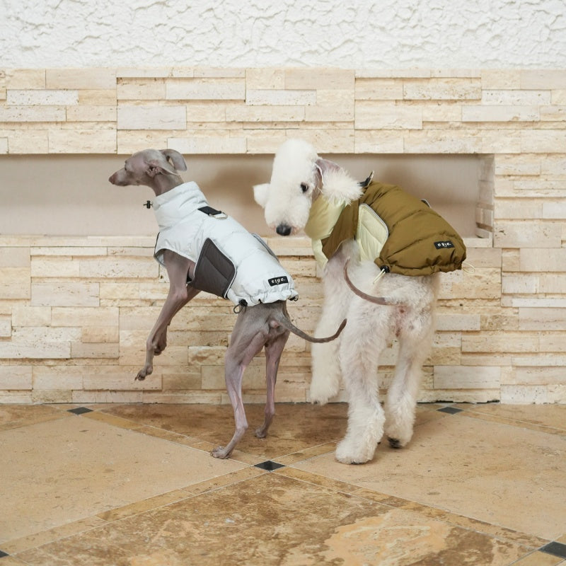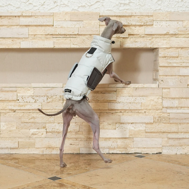 Designed specifically for slender breeds like Bedlington, Italian Greyhound, and Whippet, this white duck down vest offers superior warmth without bulk. The high-quality down insulation provides cozy comfort during colder months, while its tailored fit ensures unrestricted movement. Perfect for outdoor walks or indoor relaxation, this jacket combines functional warmth with expert craftsmanship to keep your dog comfortable and stylish.