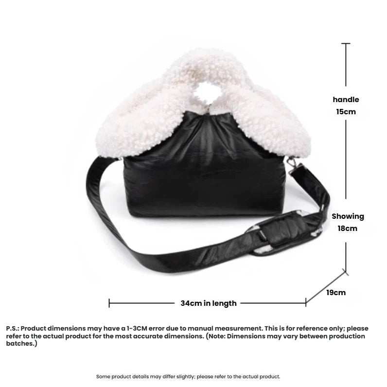 Winter Pet Carrier with Plush Trim - Adjustable Black Sling Bag for Small Dogs